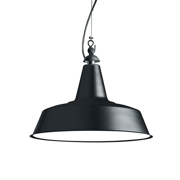 Still modern today, this suspension lamp in painted metal with white finish inside provides direct, intense illumination.