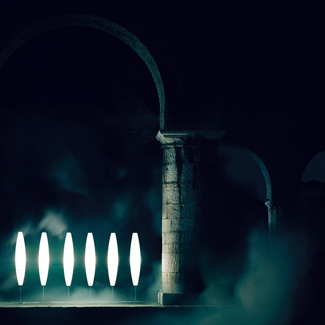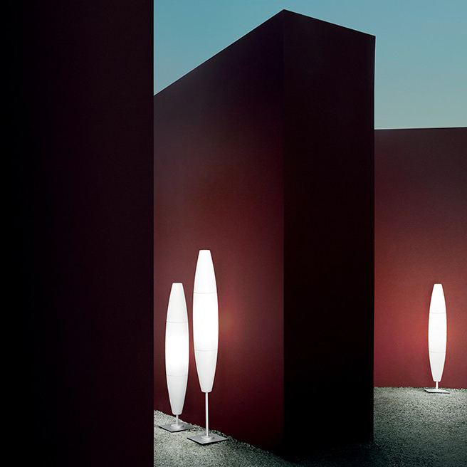 The young, light-weight appearance recalling the shape of a cigar, which ironically gives it its name, the soft light that it emits and the ease with which it blends in with the most varied contexts, have made it the great success that it is today, so much so that it is also part of the permanent collection on exhibit at the New York MoMA. The outdoor version of Havana consists of a single polyethylene body with signs that recall its division into four segments, a division which distinguishes the design of the indoor version of Havana. The outdoor Havana is available as a suspension or floor lamp in two different heights.