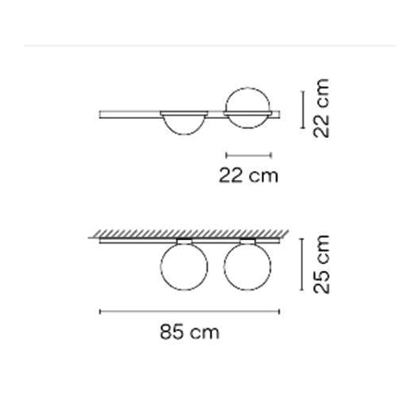 It’s a lighting system that introduces the planting normally associated daylight in the outdoors, to an indoors setting. The Palma collection also makes possible multiple globe compositions, vertical and horizontal in order to create visual axes on a larger scale, integrating vegetation. It can also be used as an individual globe. With this approach numerous options are made possible. One of the most innovative is the use of multiple wall sconce lamps for public spaces. Also available in 3000K and 4000K Color temperature on request.