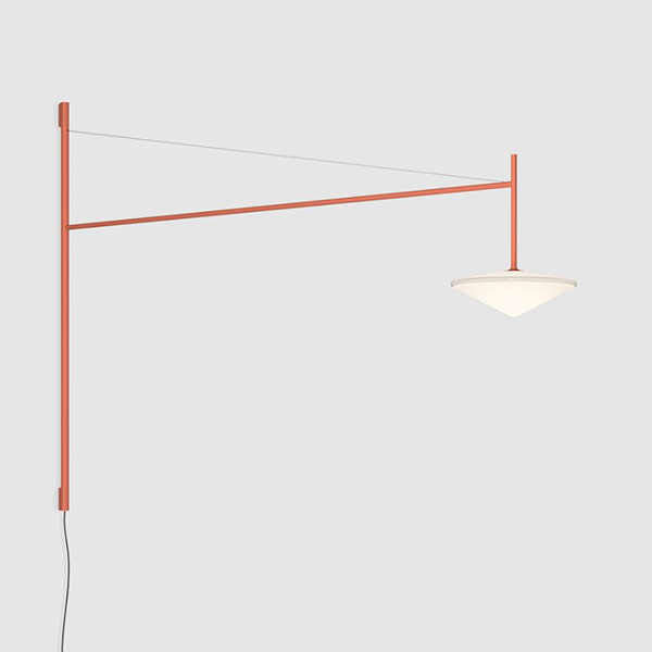 | Technical Details | Wall lamp. An adjustable rod emerges from the base attached to the wall, with blown glass diffuser and a tensing cable that permits precise adjustment of the height of the glass tulip. Connection with plug. LED light source. |