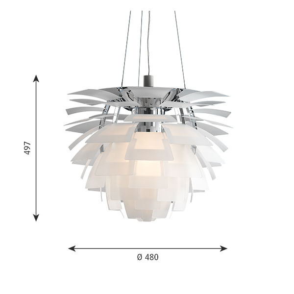Poul Henningsen’s PH Artichoke Glass was launched in 2008. The origins of the glass version date back to 1927-31 when Poul Henningsen developed the PH Septima glass light – a pendant with seven glass shades which Louis Poulsen manufactured up until 1940 when it was discontinued due to a lack of raw materials during the war. When Poul Henningsen was asked to develop a light for the Langelinie Pavillonen restaurant in 1958, he was able to finish the project in three months, because PH Artichoke Glass is based on the ideas in Septima. Septima consisted of seven shades made from clear glass with six sand-blasted regions. In PH Artichoke, the shades were grouped into ’picket fences’, as Poul Henningsen called them, and the light was made of copper. PH Artichoke Glass, which is made of handmade sandblasted glass, is closer to Septima in its expression. The light is diffused through the leaves, making it soft and comfortable. Whether the light is switched on or off, the leaves have a transparent ice-like appearance, adding elegance and lightness to the room.