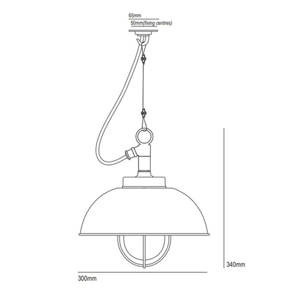 Davey's Shipyard Pendant is a highly engineered cast brass fixture with a strong copper or glavanised reflector. It features a heavy gunmetal crown and sturdy wire guard with clear or frosted well glass fitted. IP44 rated, this pendant is an ideal lighting solution for exterior spaces.