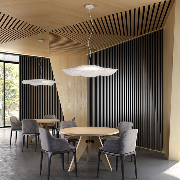 The Mediterrània lamp is an ode to the light, the Mediterranean breeze and smell. A soft wave that pays homage to our Mediterranean light, so heterogeneous throughout the day, that light that always combines bright flashes with very warm beams, especially in the sunrise and sunset.
