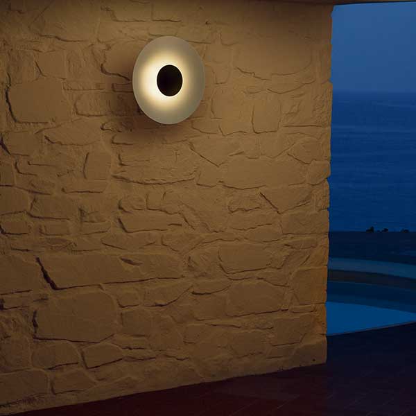 The Ginger collection is moving outdoors, with wall sconces that can be installed individually or in a cluster, a new 15 cm sconce —perfect for passageways and small outdoor areas—, a lamppost and small floor lamps. The Ginger outdoor also introduces a unique rust finish, with a deep, warm glow, alongside the standard black-white metal finish of the indoor version. As for the small Ginger wall lamp, it consists of a circular, 15-cm diameter shade that only casts light downward, illuminating just the path and avoiding glare.