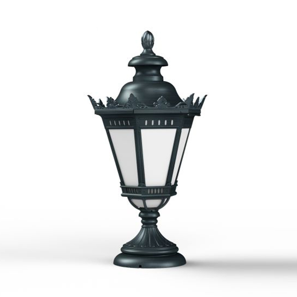 Small bollard CITADELLE with crown in aluminium, opal methacrylate bowl. 25 year warranty anticorrosion.