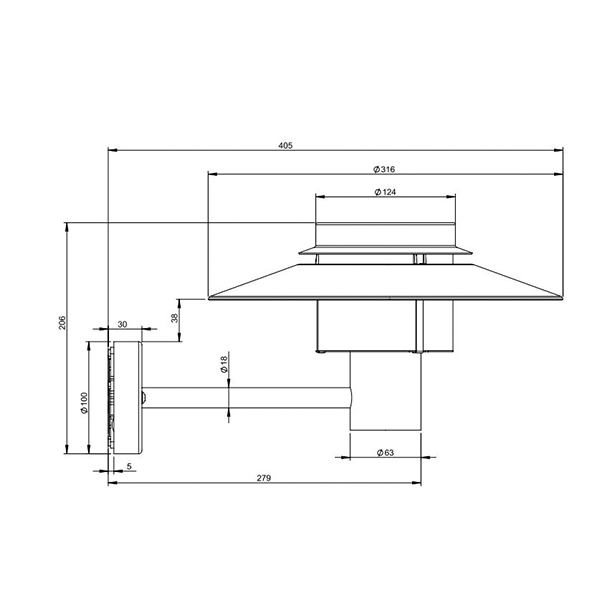 Wall bracket KERLOUAN in aluminium, clear polycarbonate diffuser. 25 year warranty anticorrosion.