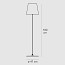 | Technical Details | Floor lamp with dual switching. Frame made of brushed nickel-plated metal. Opaline blown glass diffuser. Partially dimmable light with sliding switch. Black power cable, dimmer and plug. European two-pole plug. Bulb not included. |