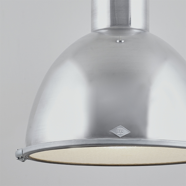 Inspired by traditional factory fittings, the Giant Pendant brings a clean-lined, industrial style. Fitted with a tinned braided cable, the pendants can be grouped together for maximum impact. Available in 3 different sizes, and a variety of colours, including polished aluminium, beige, black or stone. There is an optional wired glass visor to help reduce glare and create a softer, more diffused light.