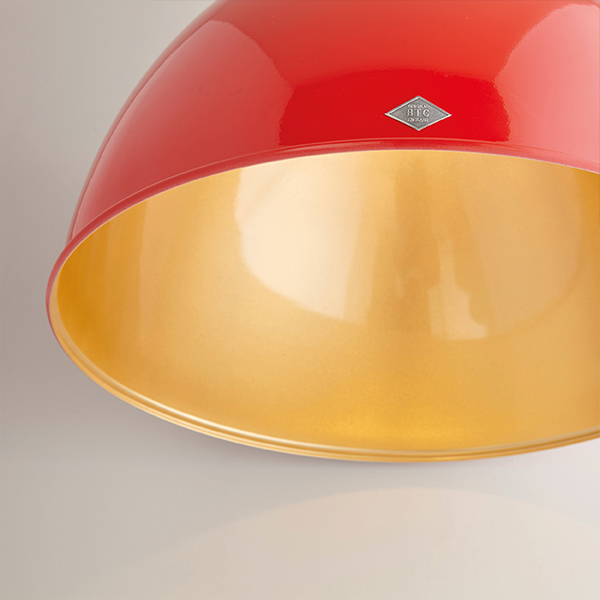 An original 1940s design, frequently seen in factories and industrial units of the period. Available in three different sizes and an array of colours, including polished aluminium, black, yellow, olive green, putty grey, red and white. Supplied with an armour steel braided cable and a choice of contrasting coloured interiors. There is an optional etched glass visor to help reduce glare and create a softer, more diffused light.