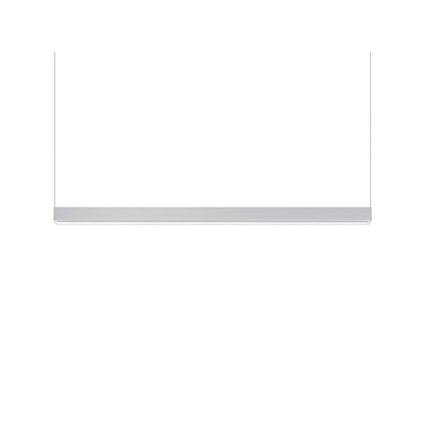 Horizontal pendant lamp with double linear LED source. Body in extruded aluminium. Heads in injection molded blended polymeric material, with diffusers in opal metacrylate. Structure painted in matt white, matt black and titan grey. Horizontal version available with uplight/downlight flood and total down. Dimmable.