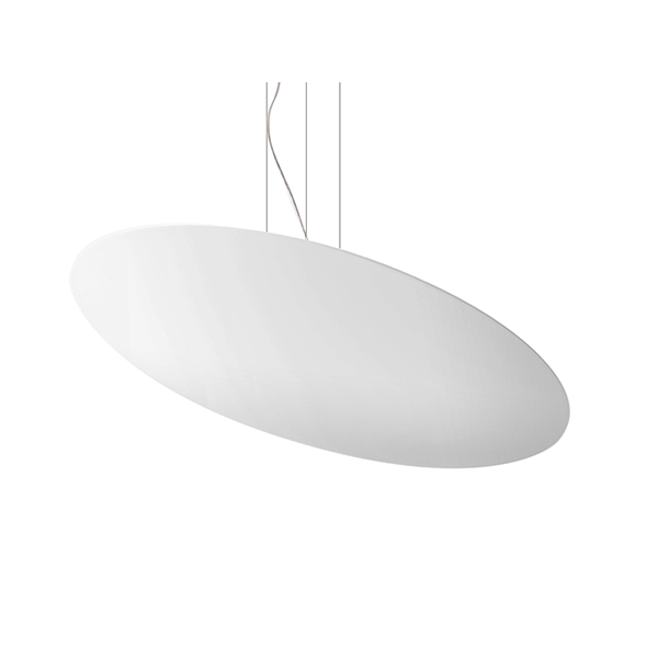 | Technical Details | Suspension lighting fixture for interiors, with indirect light emission. 2m (78,7") long steel suspension cables. 2,2m (86,6") long power cable in transparent PVC. Power canopy with pickled sheet metal case in white or black polyacrylic paint or with gold leaf coating. |