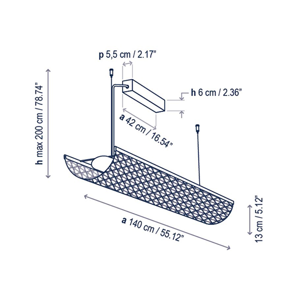 | Dimensions | Pendant Length: 55.12 inch, Pendant Height: 5.12 inch, Max Reach From Ceiling To Pendant: 78.74 inch |