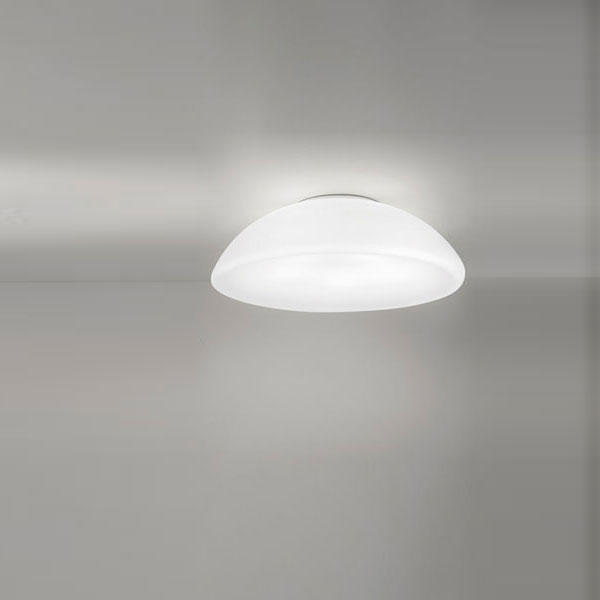 Available in pendant, ceiling and wall versions. It is the perfect answer for those looking for a large lamp. The diffuser, especially in the larger size, offers a large surface area despite an essential metal frame. A new 70 cm size is added to the collection in both ceiling and pendant versions.