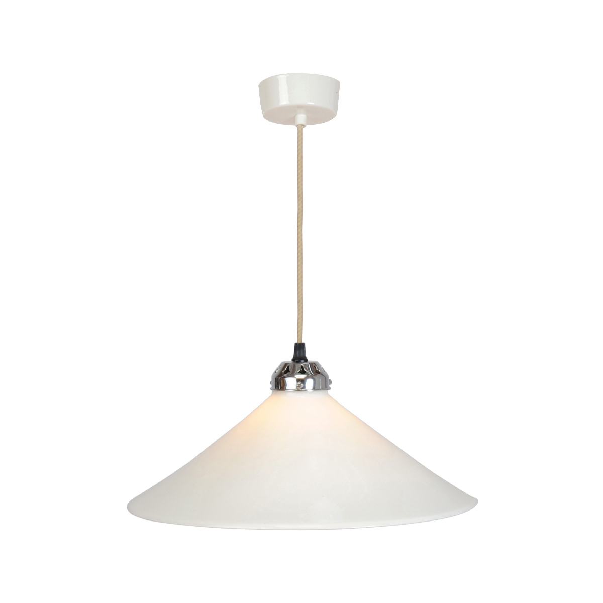 Traditionally inspired with a modern twist, the Cobb pendants are an ideal choice for lighting dining tables and kitchens. The design is based on a Dutch cobblers light, with a bone china shade and featuring Original BTC's signature braided cotton flex.