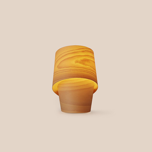 The Tiny lamp by Ray Power is an utterly unassuming light with a classic silhouette. Made with just a single strip of wood veneer, wrapped twice around the light source, the happy-go-lucky Tiny has an instantly recognisable form. In Tiny, the warmth of the natural wood veneer contrasts with the cold metal of its structure and handy handle, which allows us to place it wherever it’s needed.
