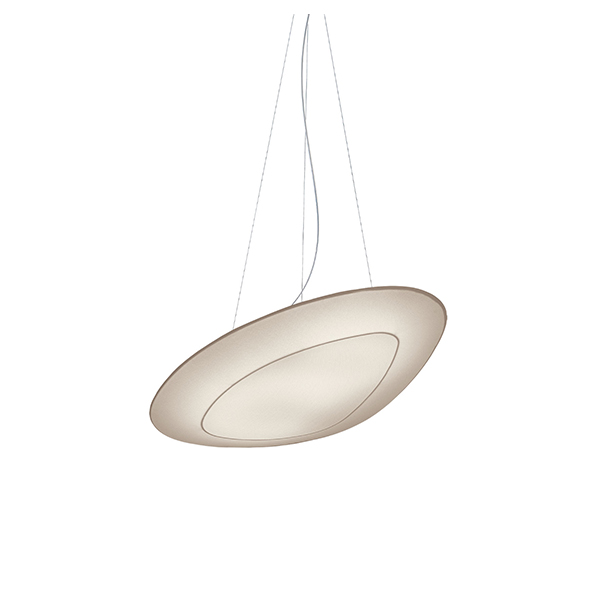 Install one or several elements from the Ring collection with their removable lycra coverings and create a ceiling decorated with stylised clouds that recall the geometric designs typical of the 1950s. Pendant, wall/ ceiling lamp with diffuser in removable and washable lycra. Fire retardant lycra fabric, in accordance with the CL1 (650°) fire normative.