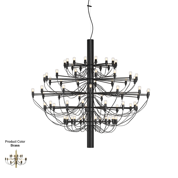 | Material | Steel central structure with brass arms, both available either chromium-plated, matte black, matte white or golded. Steel ceiling fitting and rose. |
