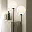 Model 1081 Floor is adding to the luxurious depth and versatility of Le Sfere collection. The strong visual presence of the floor light is a case study in balance. A single luminous sphere rests delicately on the black finish steel stem and base, serving as an ornamental structure. Alone the lamp stands as a solitary sculpture, in pairs a composition emitting a warm and diffused light. The floor light comes in two heights, 168 cm and 182 cm.