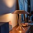 The components of Chapeaux, table lamp for direct and diffused lighting designed by Rodolfo Dordoni, have been reduced to a minimum. consists of three diffusers —varying in forms, materials, and finishes— freely placed on a transparent glass body. This glass body supports the light source: an opal polycarbonate ampoule containing technical lighting components that appears to float inside the glass. A small brushed aluminum rod at the top serves as a touch dimmer, allowing adjustment to three levels. It retains the last dimmer setting in memory when activated by a wall switch. In the M version, the diffuser is made of steel, with a glossy white finish on the inside to enhance light reflection onto the tabletop.