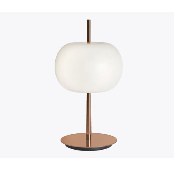 Kushi 10th celebrates ten years of light and harmony. A new table version, true to the essence that made it iconic, renews the dialogue between matter and light. Soft, essential, versatile. It’s the next chapter in a story that began ten years ago, when a stem and a sphere met for the first time. Table lamp with adjustable colour temperature and light intensity. Opal diffuser made of two layers of mouth blown glass. Metallic body available in three coating finishes: black, copper and brass.