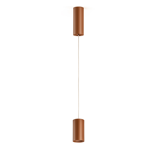 Direct-emission ceiling or suspension fixture available in 3 sizes, with lens holder with recessed optics and anti-glare hemispherical lens. There are 432 different possible combinations that the product allows to create, permitting the choice not only of dimensions and electrification, but also of finish couplings between the spotlight body and lens holder. White, black, bronze, mat brass, textured olive green and natural textured terracotta finishes are available, making this spotlight a customisation tool for the spaces in which it is placed.