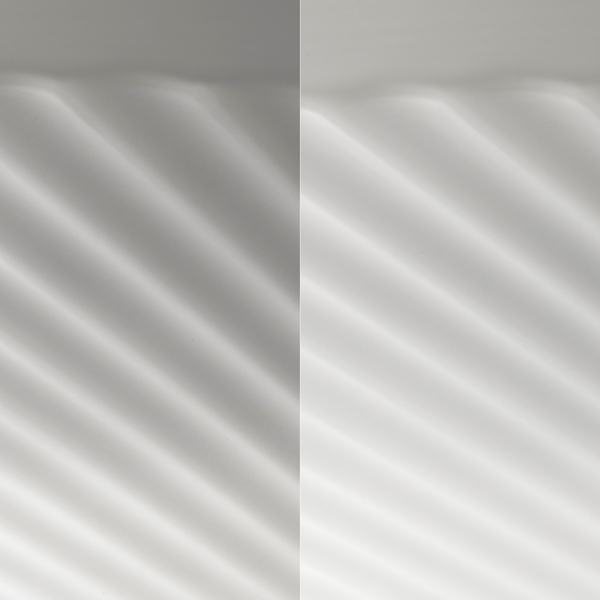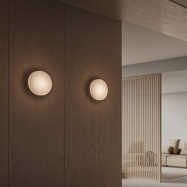 A characteristic decorative mark, through which the precision of watchmaking inspires blown glass workmanship, gives life to Côte, a collection of ceiling, wall and suspension fixtures for indoor lighting. The regular rhythm of the ribbed surface dialogues with both the light emitted and the natural light, making Côte a precious element even when switched off, an elegant hallmark of the rooms in which it is placed. The texture of the frosted glass, available in white and smoke grey finishes, is emphasised and projected by the light, with soft nuances and suggestive reflections.