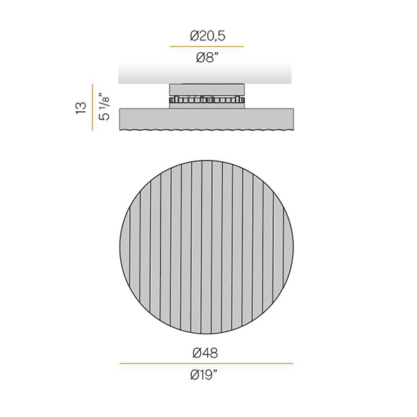 Dimensions | Lamp Diameter: 18.89 inch, Lamp Height: 5.11 inch |