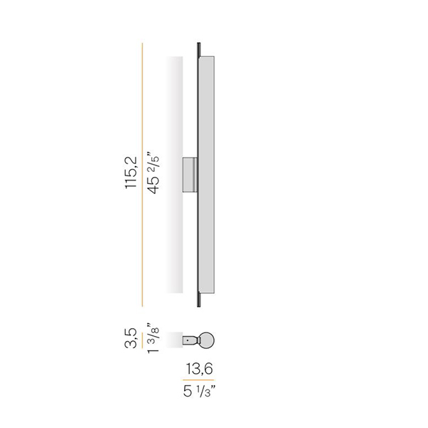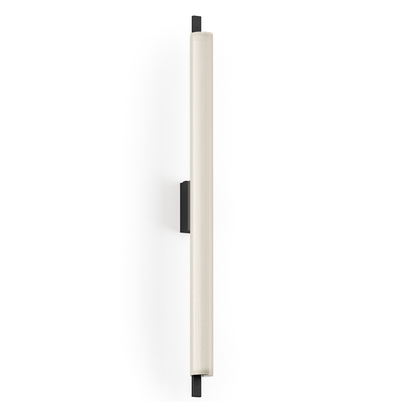 Technical Details | Wall-mounted luminaire for indoor installation, with direct emission. Extruded aluminium frame with polyacrylic paint finish in mat black or mat brass. White PVC-coated woven fabric shade. Polycarbonate inner diffuser screen. Wall mounting base in pickled sheet metal with polyacrylic paint in satin black or satin brass colour. Integrated ballast in the fixing base. |