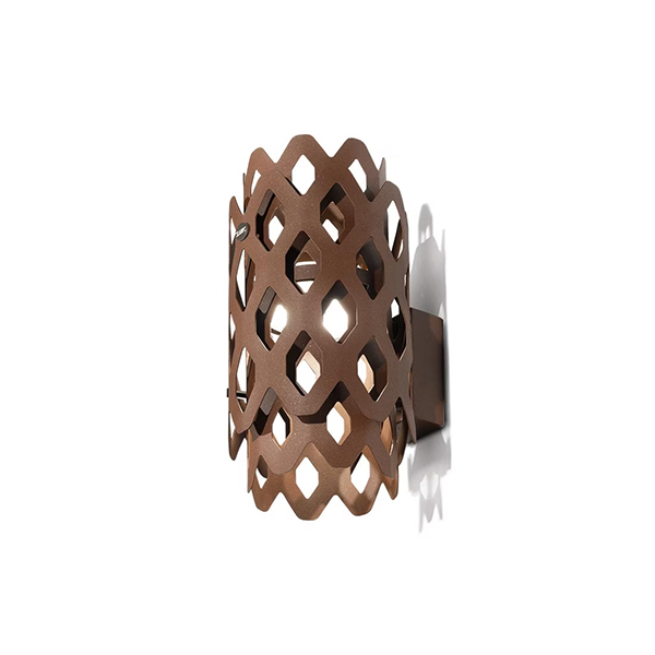 A laborious honeycomb pattern characterizes the design of Charlotte, the iconic collection signed by Doriana and Massimiliano Fusksas for Slamp ready to offer hypnotic and ever-changing perspectives even in its outdoor version, thanks to its surface with perforated hexagonal shapes. Cataphoresis-treated and powder-coated steel (Anthracite, Corten or Light Gray) provides to the Charlotte Applique maximum resistance to UV aggression and corrosion.