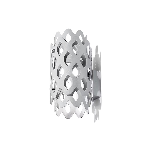 A laborious honeycomb pattern characterizes the design of Charlotte, the iconic collection signed by Doriana and Massimiliano Fusksas for Slamp ready to offer hypnotic and ever-changing perspectives even in its outdoor version, thanks to its surface with perforated hexagonal shapes. Cataphoresis-treated and powder-coated steel (Anthracite, Corten or Light Gray) provides to the Charlotte Applique maximum resistance to UV aggression and corrosion.