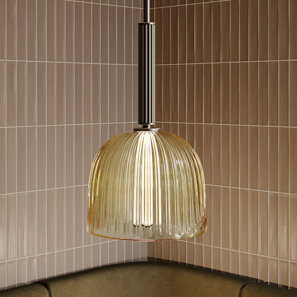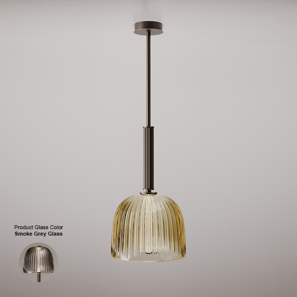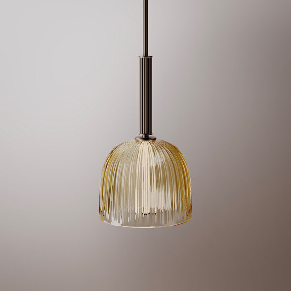 Material | Murano blown glass shade, textured glass and the vertically grooved brass rod. |