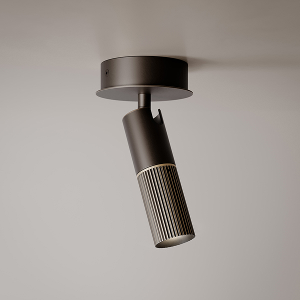 The Beak Ceiling/Wall’s adjustable cylinder directs and projects a beam of direct light. Its smooth, burnished brass finish is accented by knurling on the head, adding visual rhythm to the structure. Also available in a Flat version with a reduced-thickness canopy, Beak Ceiling/Wall can be installed on both walls and ceilings, making it ideal for contract settings. Beak is also available in Floor, Table, and Suspension versions.