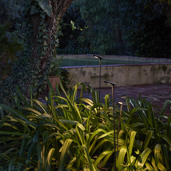 Inspired by the elegance and subtlety of flamingo legs, with lightweight, flattened heads reminiscent of pebbles eroded by air or water, and bases seamlessly integrated into the gardens that embrace them, the Birdie outdoor lighting collection, created by Jorge Herrera Studio, blends into nature to produce pleasant illumination that highlights the object or area it lights. Discreet and lightweight, the straight, slender forms of this collection almost go unnoticed, creating a gentle transition between light and darkness. They offer diffuse lighting that allows safe navigation of outdoor paths or the admiration of corners seemingly lit by a tiny sun in the middle of the night. Birdie, as a modular system, offers a wide range of accessories that allow for a large number of combinations of luminaires and bases. With options including 1, 2, and 3-luminaire bases, you can customize each installation according to your lighting needs, creating unique configurations tailored to any space. The flexibility of Birdie enables a versatile and dynamic design to achieve the ideal ambiance.