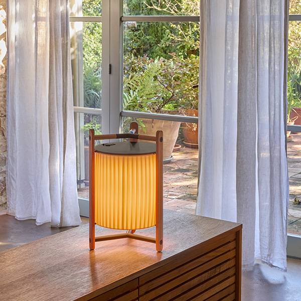 Kando, a Japanese term that captures the deep emotion and satisfaction experienced in the presence of something exceptionally valuable, is the essence of our lamps. Designed with a focus on aesthetics and functionality, these lamps are created to generate a warm and comfortable atmosphere. Our Kando lamps emit a warm, inviting light, filtered through a ribbon for indoor use or a nautical cord for outdoor use, materials that make up its shade. It is supported within a lightweight teak wood structure, which also acts as a handle for easy transport. Furthermore, the Kando allows you to adjust the color temperature of the light according to your preferences, with a manual push button offering options of 2200K, 2400K, and 2700K. Available in three sizes and versions for indoors or outdoors, they adapt to a wide variety of needs and spaces.