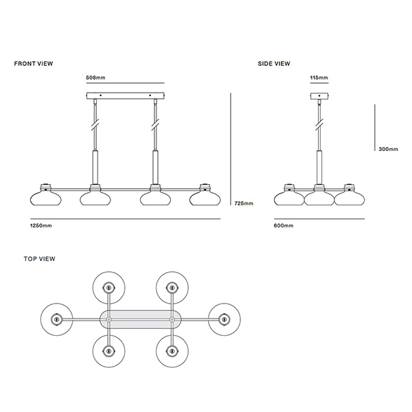 Dimensions | Pendant Length: 49.21 inch, Canopy Length: 20 inch, Max Reach From Ceiling To Pendant: 28.54 inch |