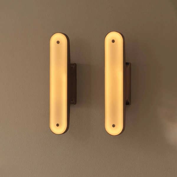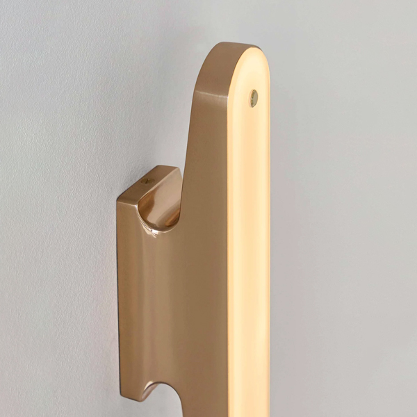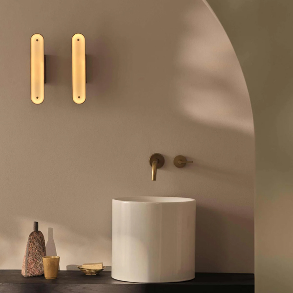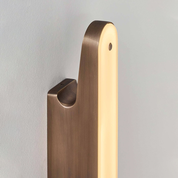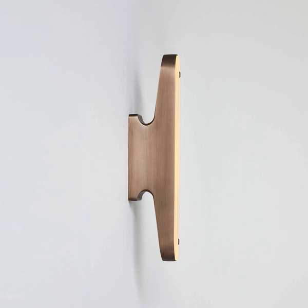 With a sculptural form inspired by sailing cleats, the Cleat wall light pairs industrial precision with subtle nautical references. Its cast bronze body houses a dimmable LED light source, producing a soft, halo-like glow on a low setting and bright, functional light when turned up fully. Thanks to its IP44-rating, Cleat is an elegant choice for bathrooms, adding depth and character to walls even when unlit. The gentle diffusion creates a calm, ambient atmosphere, highlighting the interplay between material, form and light.