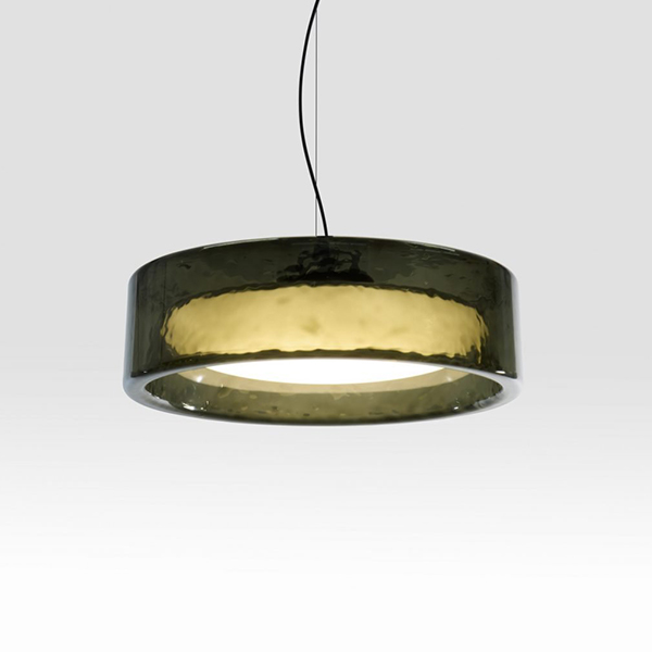 Above all, the Ringo collection is a brave design: a large pendant or ceiling lamp that accentuates material rather than form. Essentially, it’s a basic geometric shape in volume but its material is astonishing, resembling a block of ice, at the same time both solid and weightless. Its designer, Joan Gaspar, has used transparent polycarbonate to create optical reflections, giving the impression of an organic design made out of glass. Its large size is in keeping with its function, since it’s been designed to illuminate large and considerably high spaces, contemporary architectural projects ranging from hotels to contract, in which a lot of light is required. Its transparency means that it blends in readily and harmonises with the space, also when repeated. A design with an innovative proposal: its shade distributes and regulates the direct light homogeneously whilst also revealing what’s happening inside. Ringo sets ups a dialogue between light and matter. Switched off it’s a forceful object with a strong presence; switched on its transparency defines its volume and filters the light. An interplay of opposites in which the light manages to make the material less dense and its design weightless. Available in a ceiling version (with a fixed pole or built-in) and a pendant version, in two sizes, 70 and 90 cm, and in four finishes: green, rosé, smoke, and dark smoke. Height extension poles of 40 and 60 cm allow you to increase the drop length from the ceiling while retaining the rigid stem. It also has three colour temperatures: 27K, 30K and 40K.