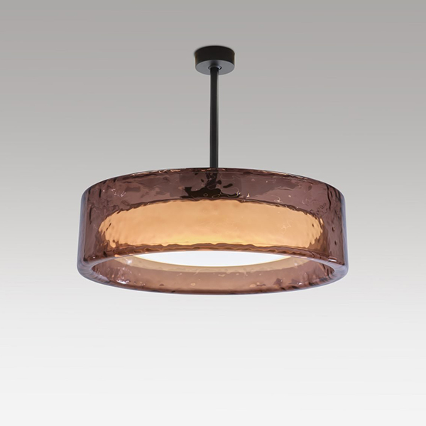 Above all, the Ringo collection is a brave design: a large pendant or ceiling lamp that accentuates material rather than form. Essentially, it’s a basic geometric shape in volume but its material is astonishing, resembling a block of ice, at the same time both solid and weightless. Its designer, Joan Gaspar, has used transparent polycarbonate to create optical reflections, giving the impression of an organic design made out of glass. Its large size is in keeping with its function, since it’s been designed to illuminate large and considerably high spaces, contemporary architectural projects ranging from hotels to contract, in which a lot of light is required. Its transparency means that it blends in readily and harmonises with the space, also when repeated. A design with an innovative proposal: its shade distributes and regulates the direct light homogeneously whilst also revealing what’s happening inside. Ringo sets ups a dialogue between light and matter. Switched off it’s a forceful object with a strong presence; switched on its transparency defines its volume and filters the light. An interplay of opposites in which the light manages to make the material less dense and its design weightless. Available in a ceiling version (with a fixed pole or built-in) and a pendant version, in two sizes, 70 and 90 cm, and in four finishes: green, rosé, smoke, and dark smoke. Height extension poles of 40 and 60 cm allow you to increase the drop length from the ceiling while retaining the rigid stem. It also has three colour temperatures: 27K, 30K and 40K.