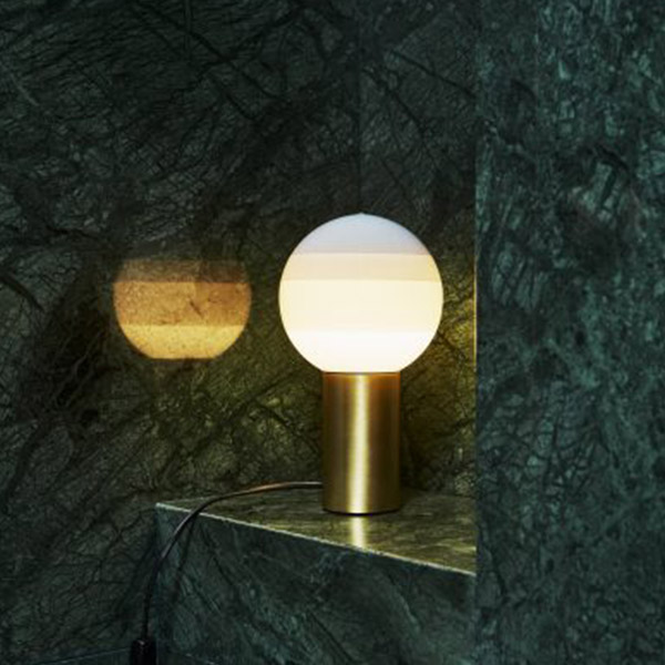 Beyond its function as a lamp, the Dipping Light seeks to excite. When it’s turned on, its different shades of paint sift the light, creating a magical ambient effect. When it’s off, its colored glass sphere is an object charged with beauty, and eye-catching design piece for a shelf, bedside, or table. Jordi Canudas is an alchemist of light. He experiments with it, seeking always to be surprised and learn from it. He wants to capture the essence of light. With this goal in mind, the Dipping Light was created as yet another experiment – dipping a lit bulb into paint several times – with the end result of this table lamp. The various layers of paint draw concentric circles and capture the light, moderating its intensity. The paint becomes the shade, colouring and texturizing the light. A brass o graphite base is added for support. This artisanal process will make each lamp a unique and exclusive creation. The table version doesn’t settle for just two sizes: the most poetic of lamps offers more uses and comes in a stand-alone portable version and with another diameter – ø20 cm – halfway between the small and the large versions. There is also a choice of finish for the base between brushed brass and graphite, while the colours of the bulb remain the same.
