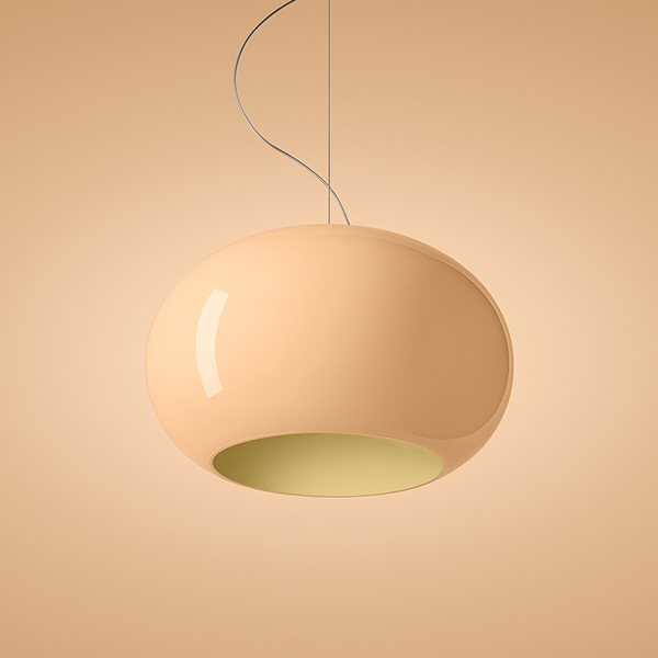 Technical Details | Suspension lamp with diffused light and down . Handblown cased glass diffuser, white on the inside and colored on the outside, with glossy finish. With the straw-yellow interior, the "warm white" version appears ivory in hue when the lamp is on and it remains white when off . Transparent injection moulded polycarbonate diffuser support. Stainless steel suspension cable and a transparent electrical cable. ABS glossy white canopy. Canopy decentralisation kit available. |