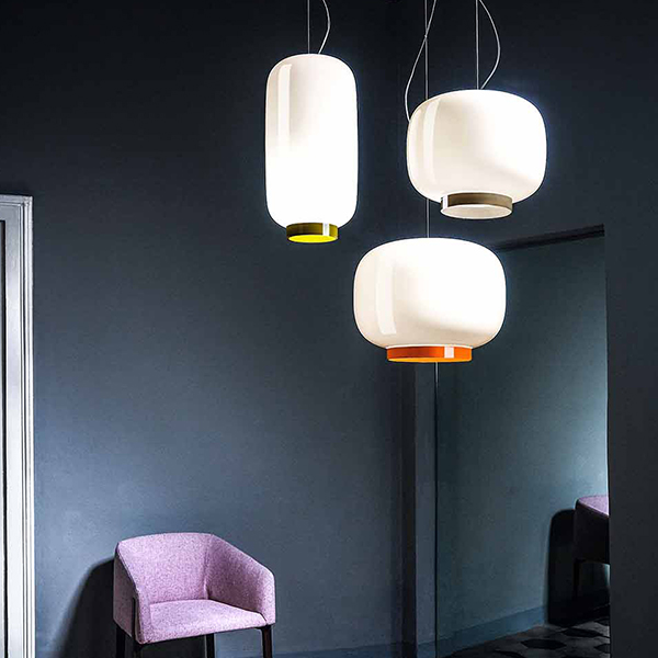 Chouchin is a Japanese word meaning those traditional symbolic paper and bamboo lanterns typically used as light and bright signs outside restaurants and bars, or as lucky charms outside homes. Simple and stylish, Chouchin teams unique craft-based expertise with a modern and strikingly simple style. The Chouchin family comprises 3 models with a coloured matt glass body. Beside the first version a new one is born: Chouchin reverse. The shapes are the same but the colours have been inverted; the diffuser is now white while the collar stays the same colour as the previous shape. It is not just about a new colour, but rather a new light, a new use even. Indeed, Chouchin reverse, thanks to the pale blown glass diffuser, not only directs light downwards – like the original Chouchin - but it also di uses a brilliant, flowing and emotional light into its surroundings.