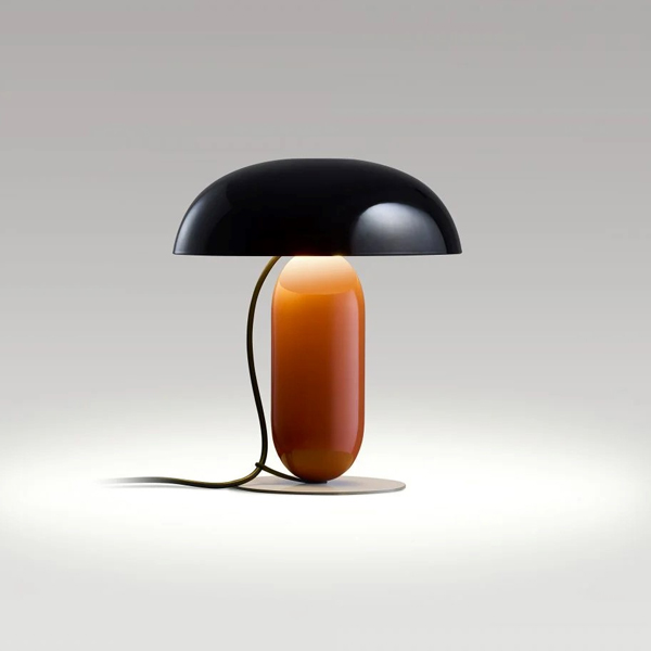 A lamp in balance. A modern take on the table lamp. The new Gambosa lamp looks like a balanced sculpture in sophisticated colours. Its creator, Mathias Hahn, has provided a modern take on the table lamp, a design that challenges the product’s traditionally static and rigid nature. A design, made of steel, that simplifies the structural elements of a table lamp (shade, stem and base), joining them together without them apparently being connected. Its curved shade seems to float delicately, adding a dynamic touch, whilst the stem is supported on a flat base, the only element to provide stability. Gambosa is a combination of geometries in balance that interact harmoniously with each other. However, the beauty of this table lamp doesn’t come solely from its composition; it’s defined by its palette of colours. The shade is available in pale pink or black, opaque versions that provide a direct light, or in opal methacrylate for softer illumination. The stem is available in orange and moss grey and the base in stone grey. This range of colours has created a matrix collection of different versions, each with their own aesthetic, from subdued to more expressive. It’s available in two sizes: 26 cm in diameter and 30 cm in height, and 36 cm in diameter and 41 cm in height. The cable also forms part of the lamp’s design, descending from the top while a clip guides it, anchors it and stops it from escaping, adding to the overall visual appeal. Gambosa is a revamped table lamp: familiar and recognised as such but surprising in terms of its contemporary shapes and colours.