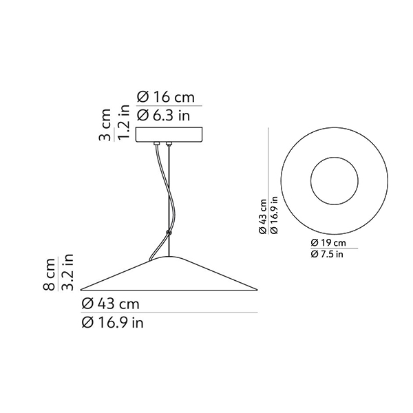 | Technical Details | Suspension lamp with opal diffuser. Painted aluminium structure, available in custom colours on request. |