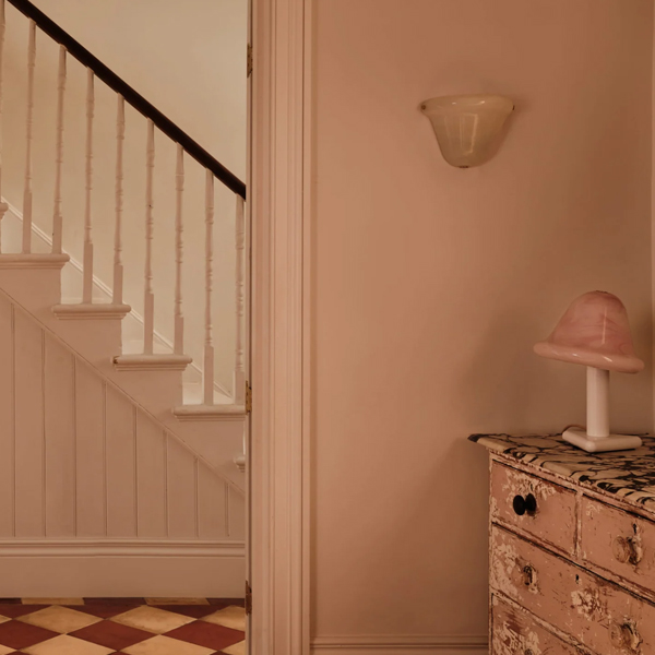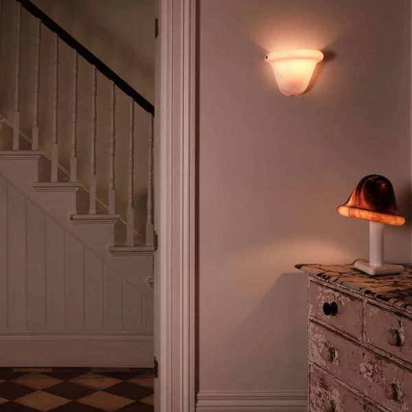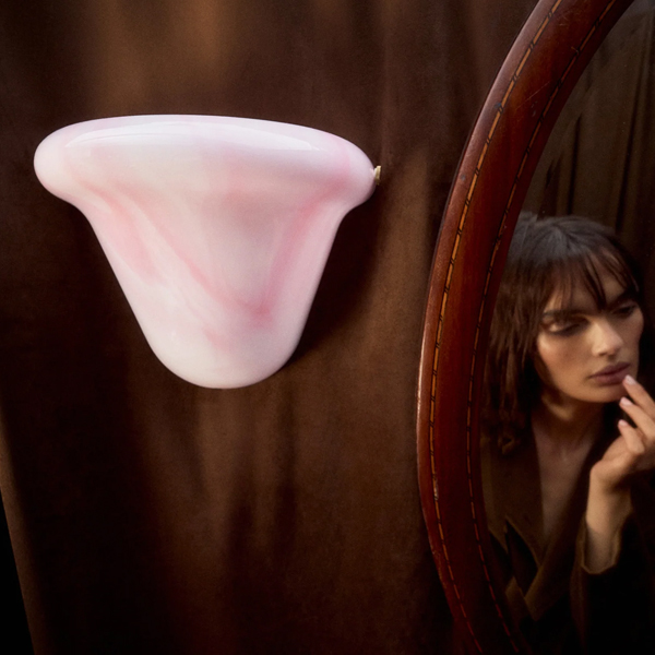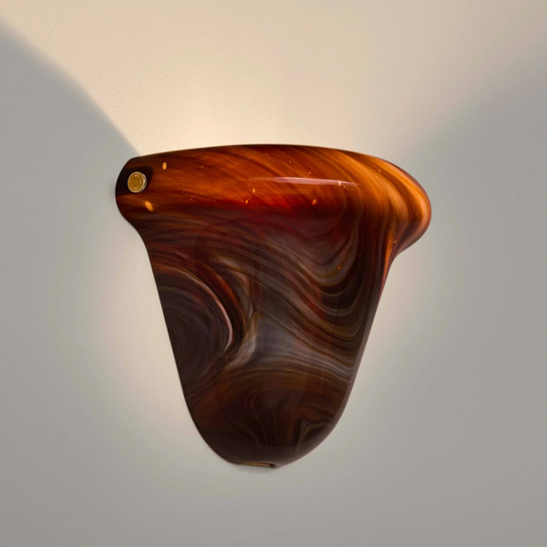 Created in collaboration with London design studio Buchanan Studio, the Neotenic lighting collection is inspired by the craft of glassmaking, curved shapes and a touch of Neapolitan nostalgia – making handmade glass the hero. The Neo Wall Light’s curvaceous shade is mouth blown in opal glass and swirled with good-enough-to-eat palette of Strawberry, Chocolate and Vanilla tones. When unlit, the swirly glass surface almost looks like delicious confectionery. When illuminated, the light transforms into a glowing pool of colour that washes light elegantly across the wall. Mounted on a compact backplate, the shade is held in place by neat brass screws that add a considered detail. The softly rounded profile sits close to the wall yet retains a generous presence, ideal for corridors, living rooms, bedrooms or either side of a mirror. Each shade emerges from our Oxfordshire oven with its own swirling pattern and delicate variations, a natural result of the hand-swirled glass that ensures no two lights are ever quite the same. Finished with a refined brass cap, the design brings sculptural elegance and a touch of flair to any space.