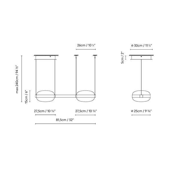 | Dimensions | Single Pendant Length: 10.82 inch, Single Pendant Diameter: 9.84 inch, Pendant Max Length: 32.08 inch, Max Reach From Ceiling To Pendant: 94.48 inch |