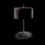 Table lamp with a metal body and fabric shade. It comes in two finishes: black matte textured body with an opaque black shade and gold textile cable, or white matte textured body with an opaque white shade and a gold textile cable. In both versions, the inside of the shade is gold. Optional black or white cable.