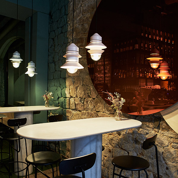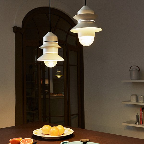 Santorini was created as an outdoor light, inspired by the lamps on fishing vessels. Four years later, after a good run, an indoor suspension version makes its appearance. The essence of its shape remains, but discarded are the traits that define it as an outdoor lamp: the hanging strap, the rubber cable, and its festive, Mediterranean colors. For this new version Marset has chosen a more subdued color palette that brings grace and serenity to indoor spaces. The new cloth cable gives it an appropriate softness and elegance. This new collection remains rich in its nuances and shapes by allowing the user to position the shades, creating different lighting arrangements. As such, with the Santorini Indoor the light can still be direct or reflected, simply and easily, with shades in four comforting colors: soft pink, clear green, sand or off-white.