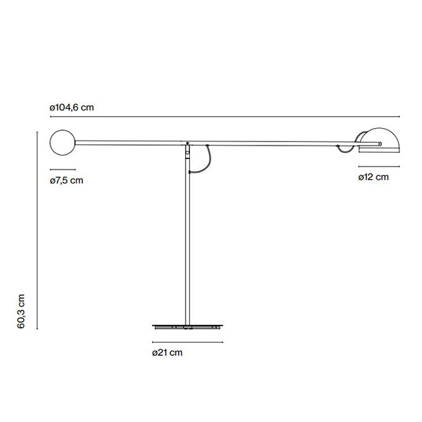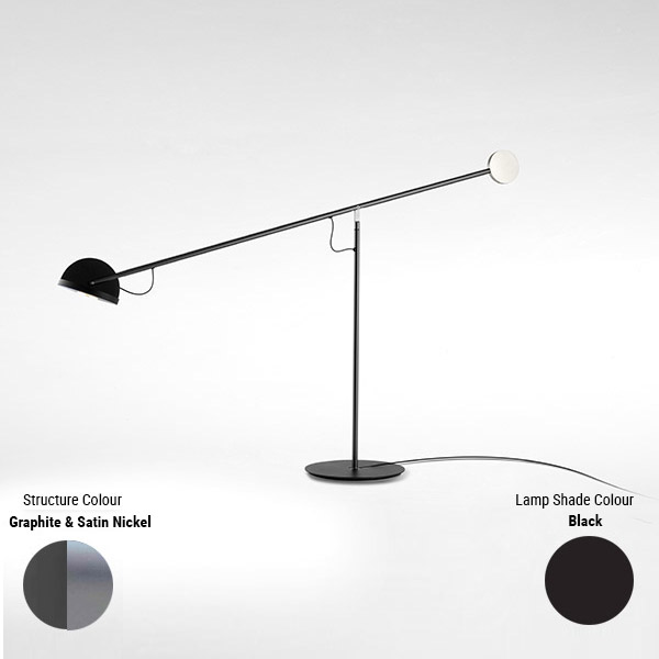Material | Structure: Satin nickel or graphite, Base: Steel, Counterweight: Steel, Diffuser: Aluminium |