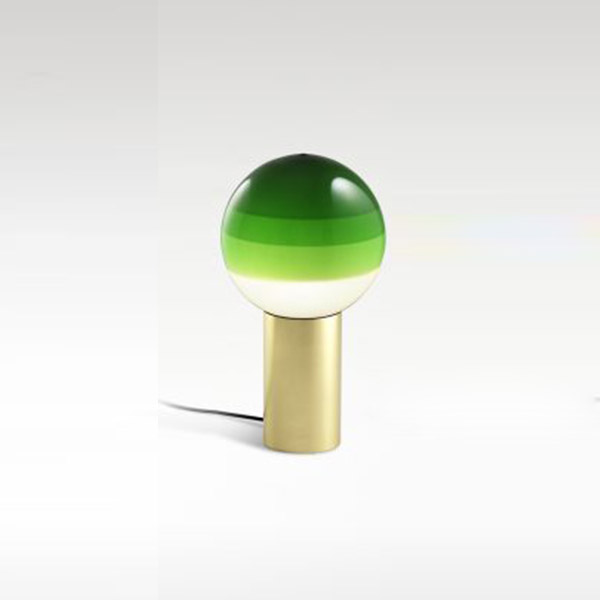 Beyond its function as a lamp, the Dipping Light seeks to excite. When it’s turned on, its different shades of paint sift the light, creating a magical ambient effect. When it’s off, its colored glass sphere is an object charged with beauty, and eye-catching design piece for a shelf, bedside, or table. Jordi Canudas is an alchemist of light. He experiments with it, seeking always to be surprised and learn from it. He wants to capture the essence of light. With this goal in mind, the Dipping Light was created as yet another experiment – dipping a lit bulb into paint several times – with the end result of this table lamp. The various layers of paint draw concentric circles and capture the light, moderating its intensity. The paint becomes the shade, colouring and texturizing the light. A brass base is added for support. This artisanal process will make each lamp a unique and exclusive creation. This collection starts out in two sizes and several colours: green, amber, pink, white, black and blue. Each lamp illuminates with different shades of light depending on the paint colour, creating a wide range of ambient lights that can match any décor. Through paint, Jordi Canudas turns his design into much more than form and function; the Dipping Light has a soul, and its light conveys poetry.