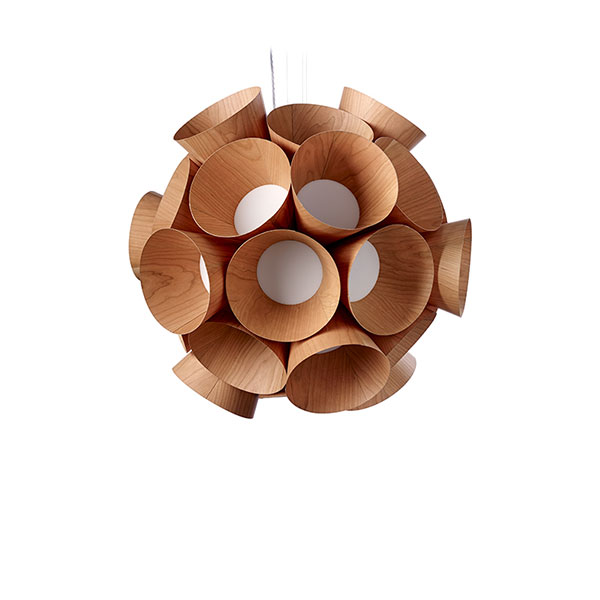 Bearing a resemblance to its flowering namesake, Burkhard Dämmer’s large Dandelion suspension lamp is a radiant composite of many single florets. Independent and distinct, each funnel-shaped floret appears to shine alone, yet en masse they create the Dandelion’s sparkle. The florets are made using LZF’s wood veneer and then placed side by side, where they rise and fall in tandem from the Dandelion’s centre. The effect is striking, with every funnel of light coalescing in one collective and brilliant whole. The Dandelion pendant was the recipient of the prestigious German Design Award 2017.